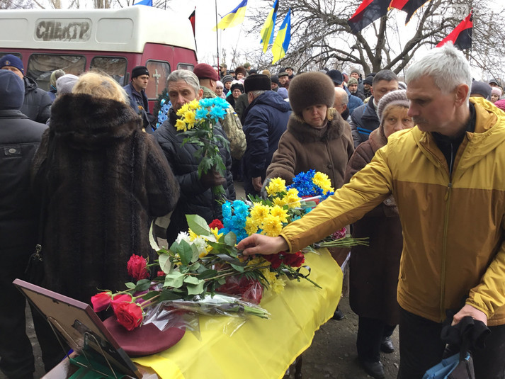 Зазначається, що сотні людей прийшли провести в останню путь земляка. Віддати останню шану загиблому захисникові України приїхали також патріоти з інших міст Донецької області. Попрощатися з соратником прибули і бійці 122 батальйону, в якому служив загиблий.