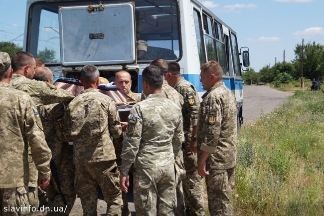 На Донеччині попрощалися із загиблим під час обстрілу бойовиками 1 липня санітарного автомобіля воїном 36-ї окремої бригади морської піхоти Сергієм Майбородою.