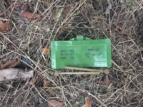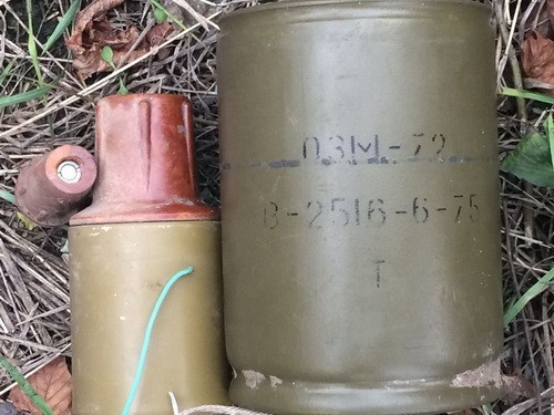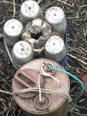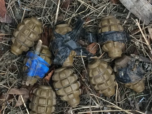 «Сховище знаходилось на території Ясинуватського району Донеччини неподалік позицій бойовиків у лісосмузі. Підхід до цих позицій був замінований двома гранатами на розтяжках. Після розмінування правоохоронці вилучили зі схованки одинадцять гранат РГ-42 та Ф-1 із запалами, п'ять гранатометних пострілів ВОГ-17, двісті грамів пластиду, дві міни МОН-50 та ОЗМ-72 з електронним детонатором, які перебувають на озброєнні виключно в армії РФ. Бойовики також залишили після себе використані індивідуальні харчові набори, котрі видають російським військовим», - йдеться у повідомленні.