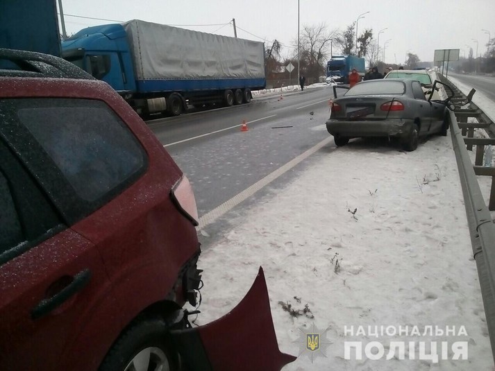 За попередньою інформацією, відбулося зіткнення трьох легкових автомобілів та вантажівки.