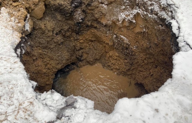 За його словами, прорвало бетонні кільця вчора під час дощу, комунальники громади розкопали дорогу, намагаючись залатати прогалину. Але виявилося, що там треба міняти 10 метрів цієї бетонної труби.