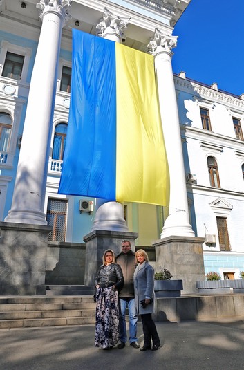 На фасаді Міноборони вивісили гігантський прапор, який пошила волонтерка