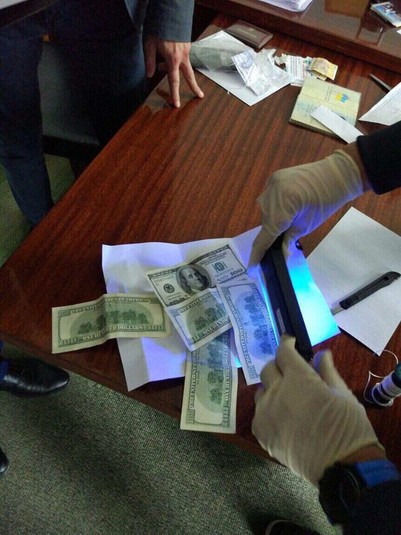 «Увечері працівники Департаменту захисту економіки Нацполіції спільно з прокуратурою - затримали на гарячому зловмисників за 208 ст. - при передачі голові і головному спеціалісту - чергового пакета-винагороди з хабарем 2300 дол. за 2 га землі. Проводяться обшуки. Готуємо матеріали до суду. За організацію системного «бізнесу» з продажу державної землі затриманим світить до 10-ти років в'язниці», - повідомив міністр.