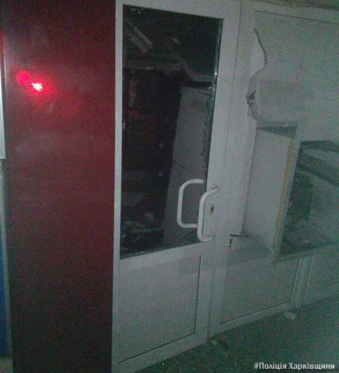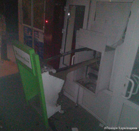 «До чергової частини Харківського відділу поліції надійшло повідомлення від чергового по залізничній станції «Жовтнева». Він розповів, що в селищі Високий біля магазину троє невідомих в камуфляжній формі невстановленим вибуховим пристроєм пошкодили банкомат та вкрали гроші», - йдеться в повідомленні поліції.