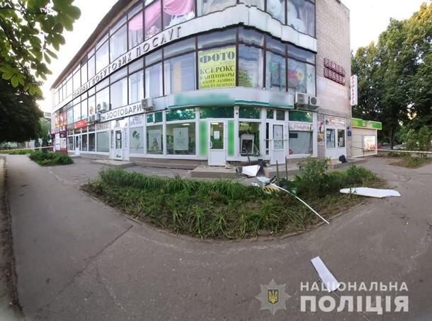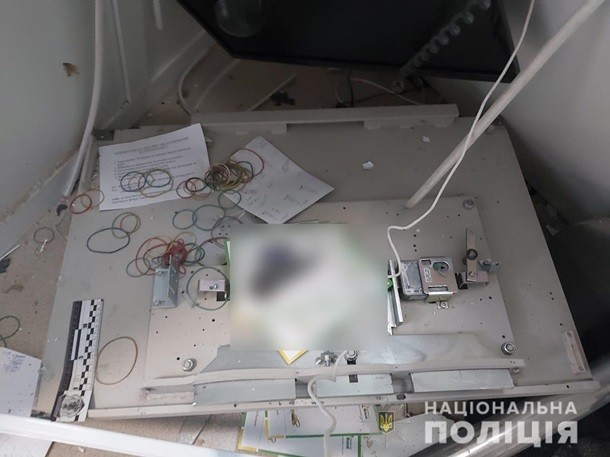 Оглядом місця події на вулиці Вальтера в Харкові і на вулиці Шевченка в Люботині встановлено, що всередині сейфового відсіку банкомату стався вибух невідомої речовини.