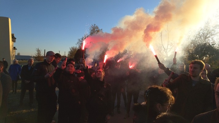 Під час похорону деякі з учасників церемонії запалили фаєри.
