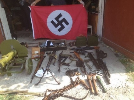 Під час обшуку в оселі чоловіка, що має і український, і російський паспорти, правоохоронці вилучили два кулемети MG-42, пістолети-кулемети ППС та ППШ, станковий кулемет «Максим», два карабіна К-96, чотири муляжі протитанкових гранат та набої.