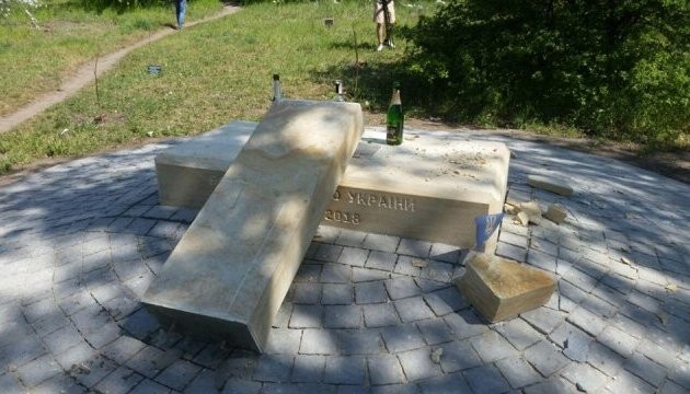Сьогодні вночі на острові Хортиця в Запоріжжі вандали зруйнували пам’ятник борцям за волю України 1918-2018 років, встановлений тиждень тому.