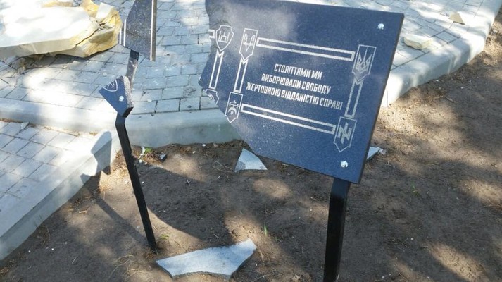 «Сьогодні вночі на Хортиці вандали знищили пам'ятник «Борцям за волю України 1918-2018 років», які загинули, захищаючи українську землю. Приїхавши на місце події сьогодні вранці, ми побачили розбиту пам'ятну табличку та розтрощений хрест», - сказано в інформації.
