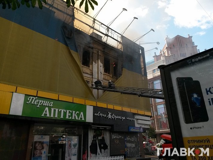 Державна служба з надзвичайних ситуацій повідомила, що орієнтовна площа займання пожежі становить 1000 квадратних метрів. «Горить покрівля. Є загроза поширення вогню на поруч розташовані житлові будинки», ідеться в повідомленні. У ДСНС додали, що уточнення площі пожежі ускладнюється розміщеним на фасаді банером. Рух по Хрещатику перекрито від вулиці Прорізної до Бессарабської площі.