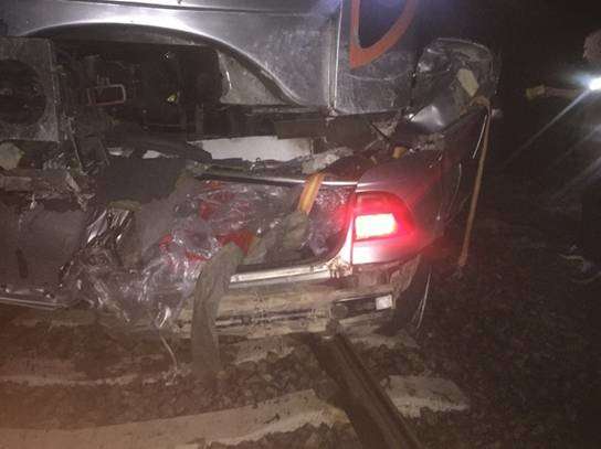 Машиніст екстрено загальмував і після зіткнення потяг протягнув авто вперед близько 200 метрів