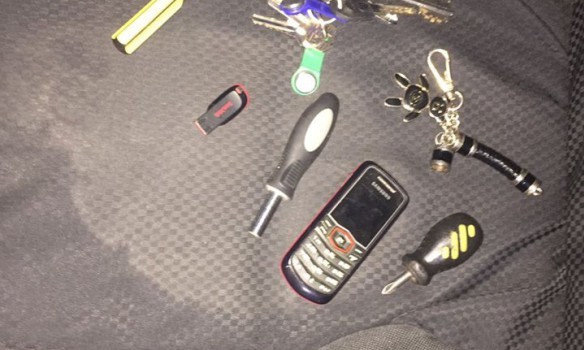 При затриманні працівники поліції у зловмисників вилучили речові докази - різноманітні інструменти та відмички.