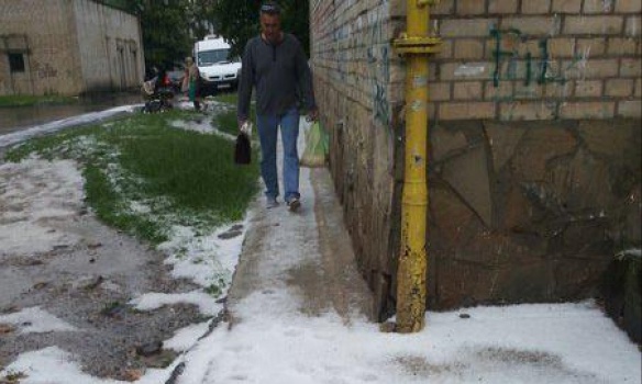 Рясна злива, яка накрила місто Луцьк після обіду 9 червня, змінилася снігом і градом з дощем, повідомляє «Район. Луцьк».