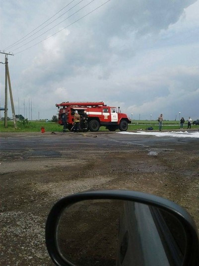 За даними дописувачів соцмереж, унаслідок ДТП на дорожнє полотно стався розлив окислювача ракетного палива