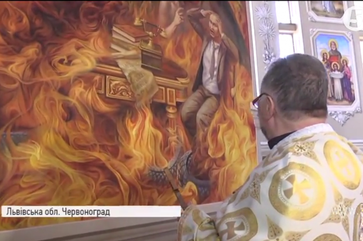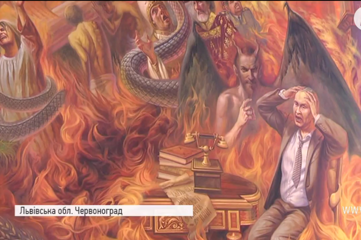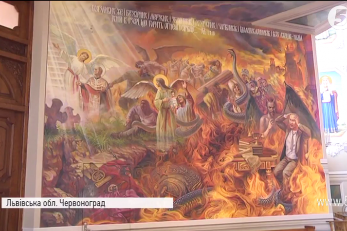 На Львівщині у храмі з’явилася фреска із палаючим в пеклі Путіним