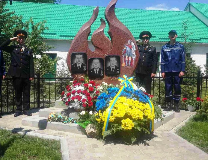 Під час церемонії відкриття отець Володимир освятив пам’ятний знак. На знак вшанування пам’яті загиблих рятувальників в супроводі оркестру «Почесна варта» відбулося покладання квітів до стели.