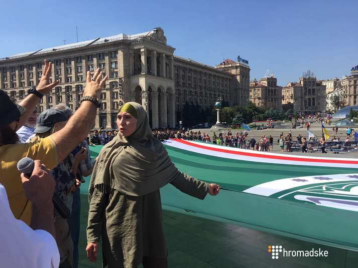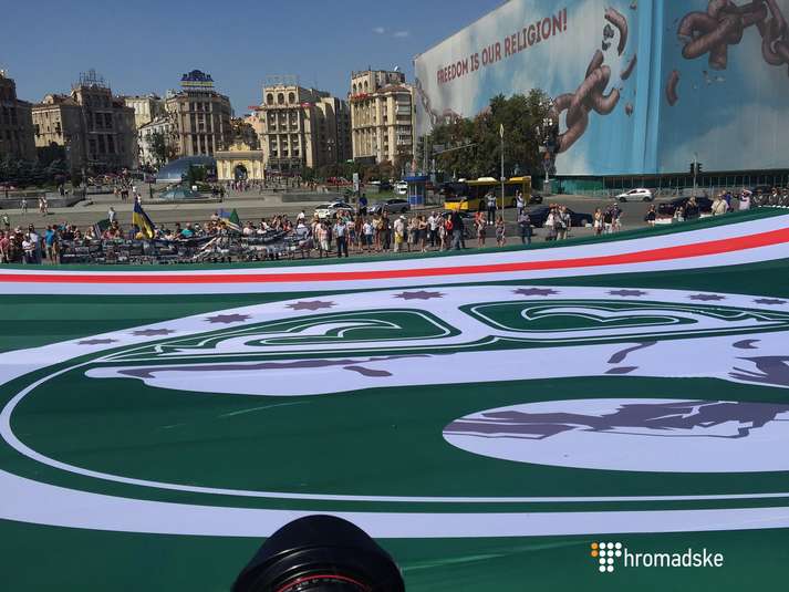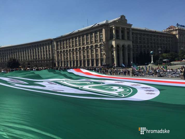 На Майдані Незалежності у Києві розгорнули велетенський прапор Ічкерії (фото)