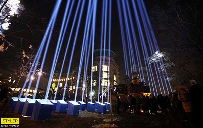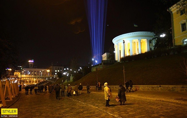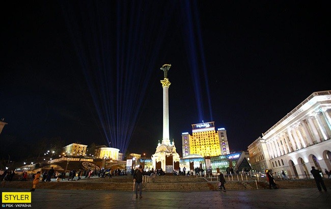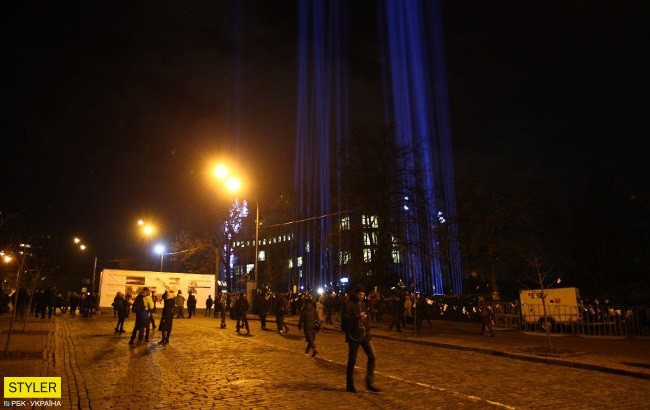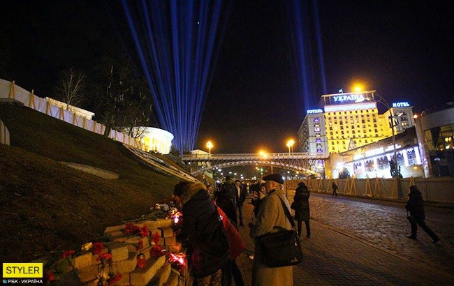На Майдані Незалежності у місцях загибелі учасників Революції гідності ввечері 20 лютого запалили «Промені Гідності». Вони, за задумом організаторів цієї акції, символізують, душі загиблих.