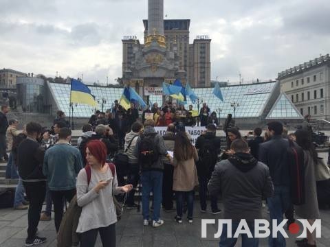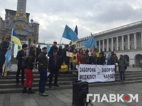 На головній площі України зібралися десятки людей на захист Меджлісу. Вони тримають плакати «Заборона Меджлісу – заборона народу», повідомляє кореспондент «Главкома».