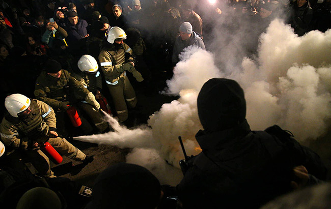 Конфлікт виник між активістами і поліцією, після того як мітингувальники спробували запалити автомобільні шини на Майдані, повідомляє РБК-Україна.