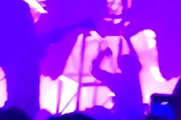 Після того, як аварійна служба допомогла співакові вибратися з-під реквізиту, концерт був зупинений.