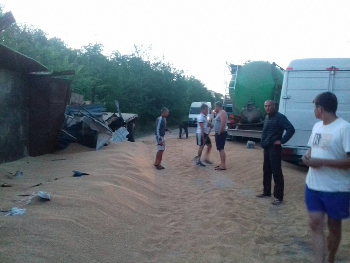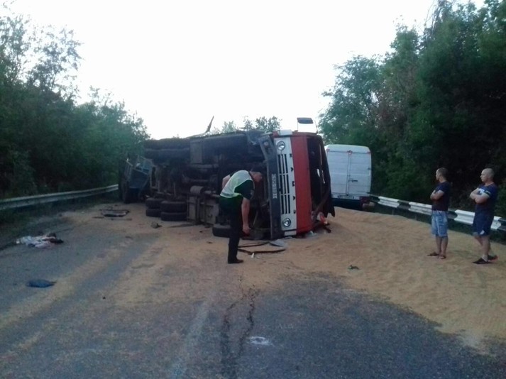 «Водій автомобіля КАМАЗ, рухаючись зі сторони м. Миколаєва в напрямку м. Первомайськ, з невідомих причин виїхав на смугу зустрічного руху, де допустив бокове зіткнення з автомобілем Сканія, після чого продовжив рух, допустив перекидання транспортного засобу на лівий бік та зіткнення з автомобілем КАМАЗ, в результаті чого відбулось розсипання зерна на проїзну частину. Автомобіль Сканія також продовжив рух та допустив бокове зіткнення з вантажним автомобілем Мерседес Бенц 811», - сказано в повімдоленні.