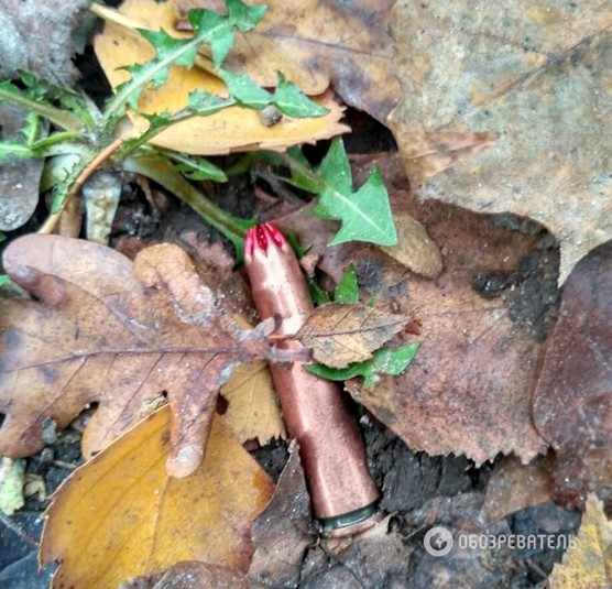 Їх виявили журналісти і повідомили правоохоронцям. Після чого на місце злочину приїхали оперативники Васильківського відділу поліції, які і вилучили три холості патрони.