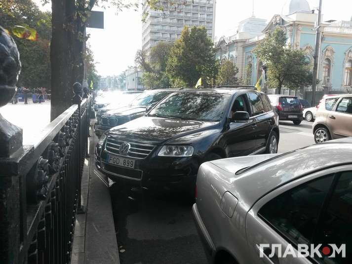 Автомобілі з номерами з іноземною реєстрацією, які люди привезли у район ВР і припаркували біля тротуарів, спровокували затори в урядовому кварталі. За даними поліції, на акцію приїхали близько 850 автомобілів.