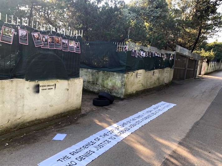 Активісти обвішали паркан вілли глави МВС Арсена Авакова в італійському муніципалітеті Сан Феліче Чірчео у регіоні Лаціо фотографіями вбитих та побитих українських активістів.