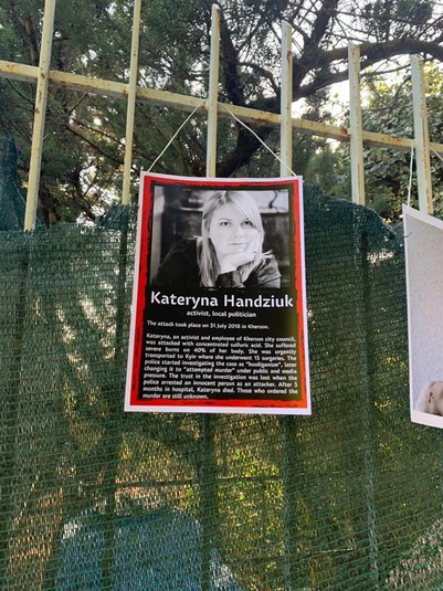 «40 фотографій постраждалих активістів зі списку Катерини Гандзюк також нагадали міністру про те, що завдяки свавіллю та умисній бездіяльності системи Нацполіції в Україні проти громадських активістів розгорнувся справжній терор», - йдеться у повідомленні.