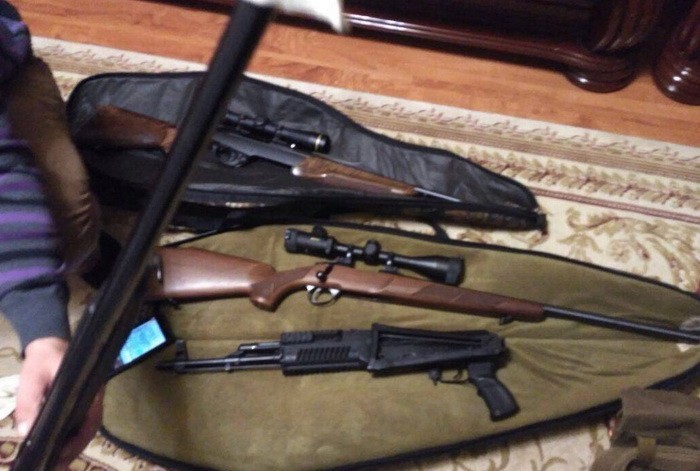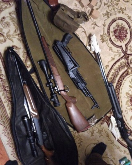 Під час обшуків у відділі поліції та за місцем проживання зловмисників правоохоронці виявили незаконно отриману зловмисниками деревину, $8 тис та арсенал зброї невідомого походження.