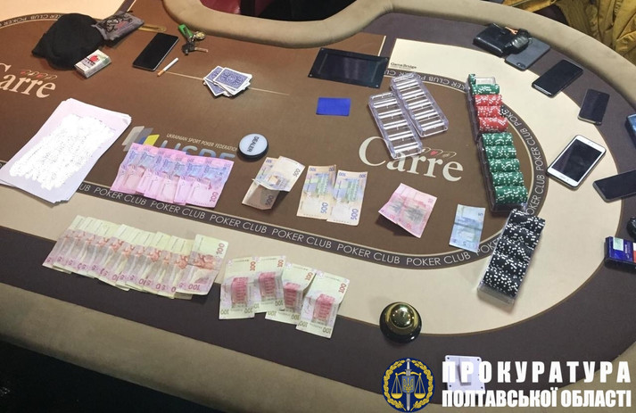 В поліції розповіли, що мережа незаконних гральних закладів працювала у Полтаві та Кременчуці, під «прикриттям» клубу спортивного покеру. Поліція підозрює, що у групу входило 5 осіб — організатор та адміністратори. Гральні заклади працювали через клуби спортивного покеру Carre — у приміщеннях цих клубів і проводилися ігри.