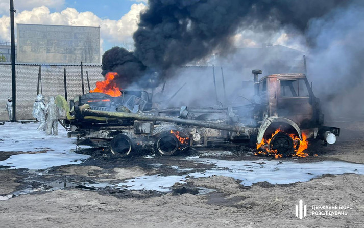 За попередніми даними, на території військової частини сталося загоряння бензовозів.
