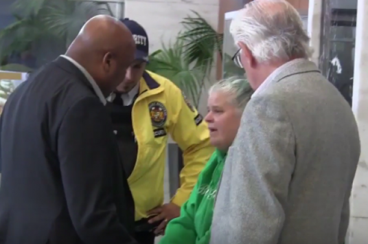 Охоронці швидко затримали порушницю громадського порядку, а прем’єр-міністр сів у автомобіль і поїхав.