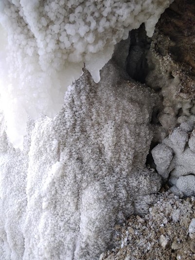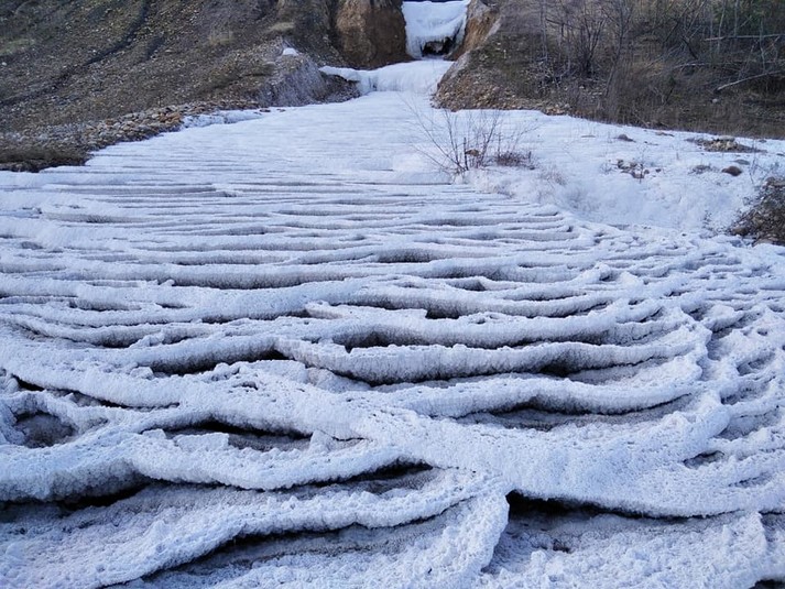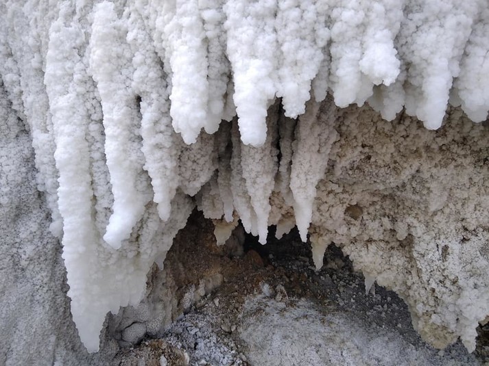 Як повідомив виданню «Курс» заступник директора НДІ «Галургії» Юрій Садовий, на місці витоку з кар’єру розсолів утворюється мирабіліт – десятиводний сульфат натрію (Na2SO4 10H2O), який застигає при температурі +8 і нижче.