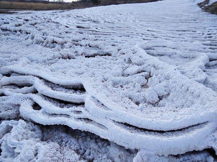 У місті Калуші Івано-Франківської області випливають розсоли з Домбровського кар’єру, де зберігаються мільйони кубічних метрів відходів колишніх калійного й магнієвого виробництв. Застигаючи вони утворюють моторошні, мертві соляні річки. Відповідні знімки опублікував на своїй Facebook-сторінці гірський рятувальник Василь Фіцак.