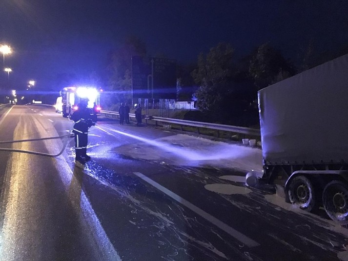 Рятувальники провели змивання клею з автошляху