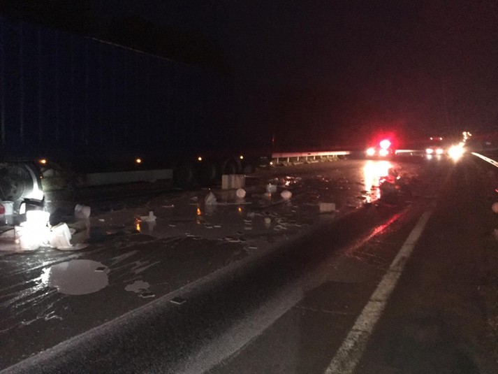 На Рівненщині внаслідок ДТП перекинувся напівпричіп автомобіля, який був заповнений клеєм ПВА, стався розлив клею на дорогу.