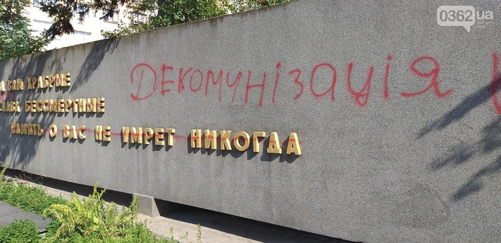 Зазначається, що зловмисник червоною фарбою закреслив російськомовний напис «Слава вам, хоробрі, слава, безсмертні, пам'ять про вас не помре ніколи». Незакресленим він залишив лише одне з слів «Слава», написавши поруч «Україні!». Таким чином утворився напис «Слава Україні!»