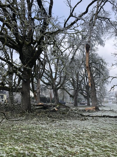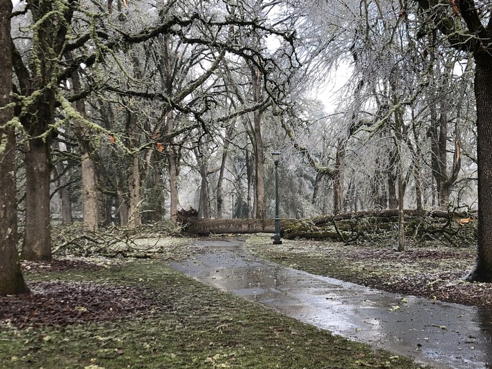 Here’s another look at the massive number of downed trees and branches in Bush Park following the ice storm. The occasional branch is still breaking and falling in the park from the ice. #Salem #salemoregon #oregon #icestorm #ice #clypiancoverage pic.twitter.com/NrMoxS2bjs