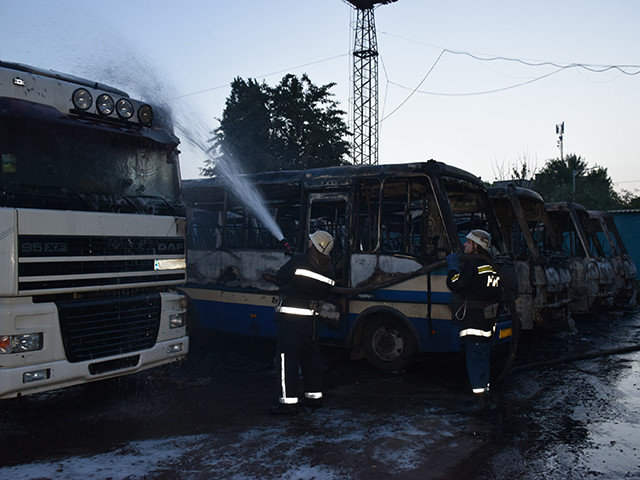 По прибуттю вогнеборців було встановлено, що через вчасно не вжиті заходи охороною стоянки вогонь перекинувся на автобуси, що стояли поряд, а також на тягач DAF, а кількість палаючих автівок склала шість одиниць.