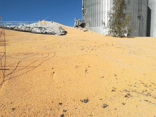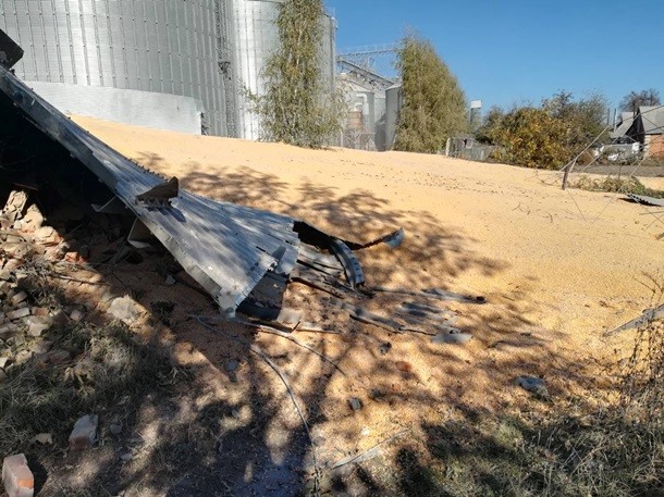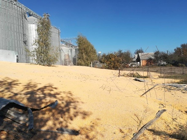 За попередніми даними, інцидент стався не через підрив, а перевантаження. У ємності відлетіли заклепки, і зерно опинилося на вулиці.