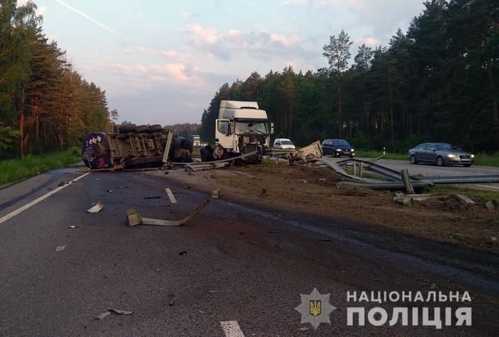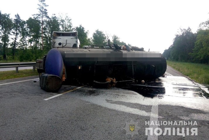 На Житомирщині на 99-му кілометрі автошляху Київ-Чоп 27 травня близько 05:20 сталося перекидання автоцистерни.