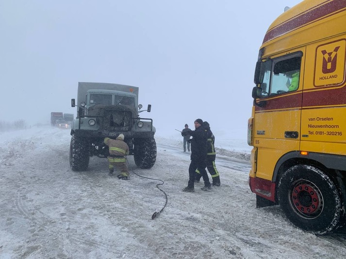Зазначається, що мобільні групи рятувальників разом з патрульною поліцією і службою автомобільних доріг за допомогою важкої інженерної техніки займалися розблокуванням руху.