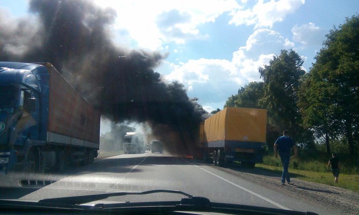 За словами очевидців, через задимлення внаслідок пожежі рух на дорозі був заблокований на півгодини. Свідки події також зазначають, що кабіна водія фури вщент.