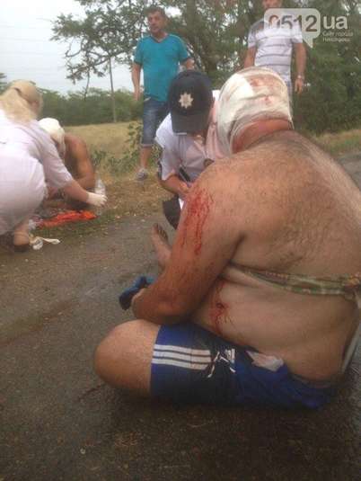 Унаслідок нападу пасажир автомобіля та водій отримали травми невідомої ступеня тяжкості. Їх «швидка» доставила до лікарні в Миколаєві.
