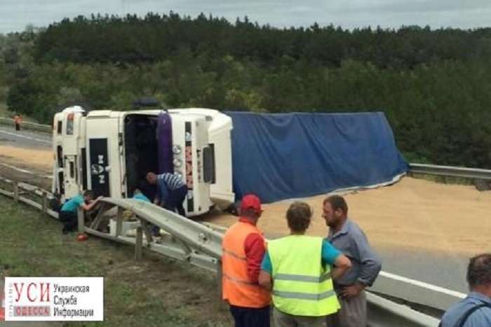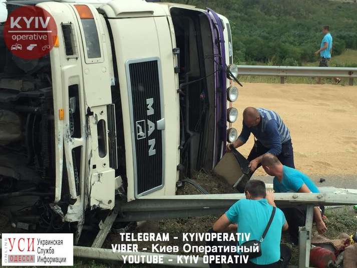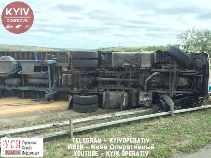 На трасі під Одесою перекинувся зерновоз: рух автівок у бік Києва повністю заблоковано