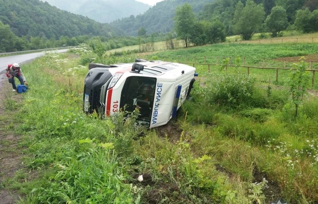 У понеділок, 18 червня, автомобіль швидкої, який віз 73-річного пацієнта з інфарктом, з’їхав на узбіччя та перевернувся.