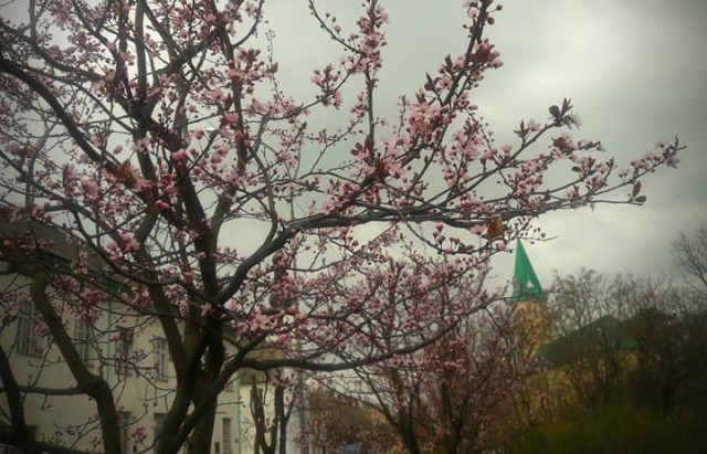 Першою цьогоріч, і вже який рік підряд, зацвіла сакура в центрі Мукачева