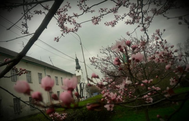 Це диво-дерево, яке росте в самому центрі Мукачева на площі Федорова. Тепло лиш прийшло, а вона встигла розпустити кілька квітів, ніби попереджуючи, що за лічені дні заквітне вся.